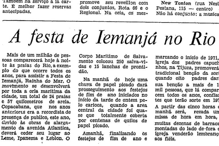 Hoje, o evento é realizado na Praia de Copacabana e possui a participação da Prefeitura do Rio de Janeiro, faz parte do calendário da cidade junto a Riotur. O Conselho Nacional de Umbanda, trabalha para ter a participação do estado e do governo federal, compreendendo que foi os eventos isolados que deu origem ao Reveillon de Copacabana, um dos maiores eventos da terra.